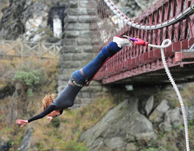 皇后镇的蹦极公司只有一家叫AJ Hackett Bungy New Zealand,他家有三个不同的地点可以蹦极,最出名的要数世界首家蹦极地卡瓦劳大桥蹦极(Kawarau Bridge Bungy),43米高。另一个是南半球最高的蹦极叫内维斯蹦极(The Nevis Bungy), 134米高,自由落体时间为8.5秒。第三个地点在皇后镇天空缆车山顶,蹦极平台The Ledge Bungy,47米高,皇后镇唯一一家可以夜间蹦极的地方。