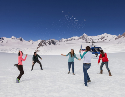 搭乘直升机或是雪上飞机领略库克山独特的自然风光,行程从10分钟-65分钟不等,大部分活动包含冰川、雪降时间,让您有足够的时间拍照留念。