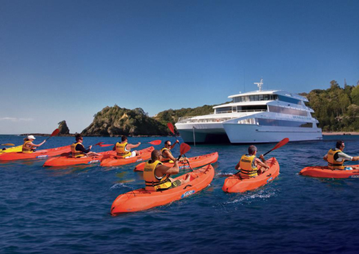 探索Hauraki海湾的各个岛屿,每一个都有其独特的外表,发现不为人知的沙滩,在清澈的太平洋海水中划独木舟或浮潜在甲板上一边观赏日落一边享用包含开胃菜,主菜和甜点的大餐,船上也提供新西兰产的优质啤酒和葡萄酒,回到私人的海景船舱就寝在新鲜出炉的欧式早餐的香味中醒来,开始返航,返航途中可以观赏到奥克兰东部海滩的美景,上午9:00回到出发点。